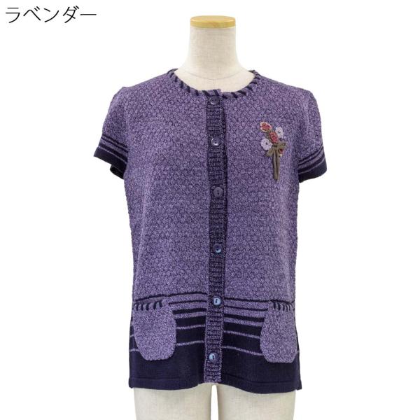 毛混 ニット ベスト 花モチーフ トップス 婦人 婦人服 高齢者 介護 施設 名入れ 70代 80代 90代