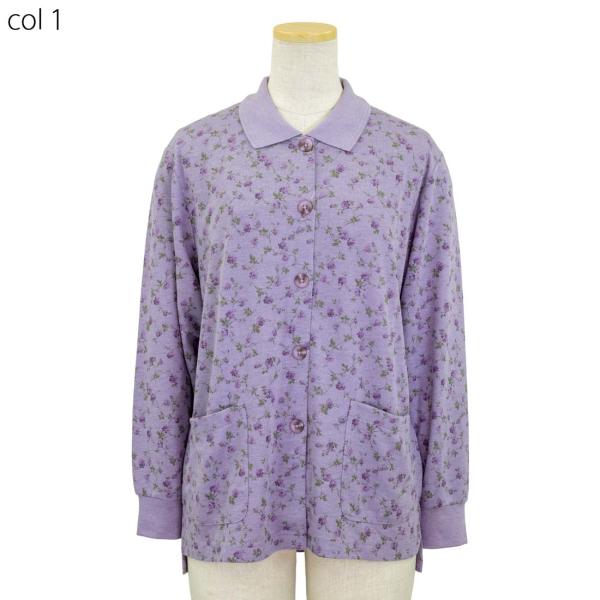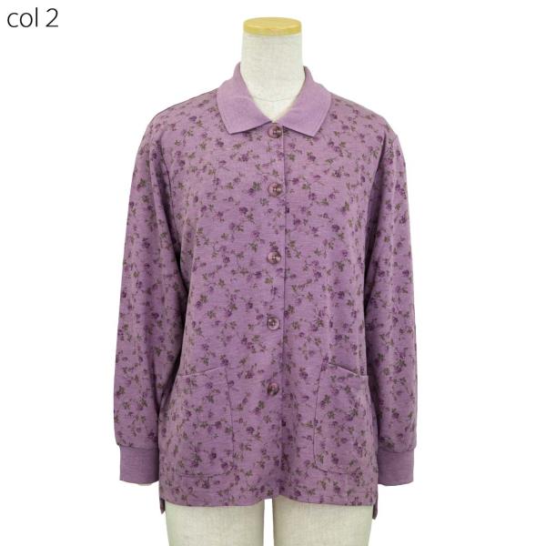 長袖 前開き ボタン プリント ポロシャツ カーディガン シニアファッション 秋冬 シニア●女性 婦人服 高齢者服 高齢者 婦人 70代 80代 90代 服 通販 高齢者