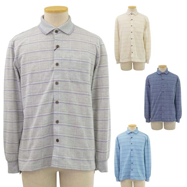 ジャガード マジックテープ ワンタッチ 長袖 前開き 全開 ポロシャツ シニアファッション 春夏 70代 80代 90代 高齢者 紳士服 介護 施設 デイサービス