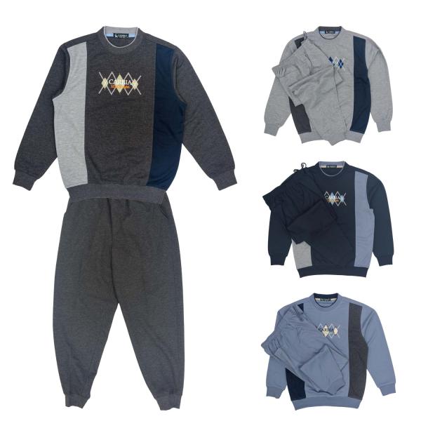 シニア 通年■快適 切替デザイン スウェットスーツ クルー ブルゾン ダンボール パンツ 上下セット 丸首 メンズ シニアファッション 紳士服 70代 80代 90代