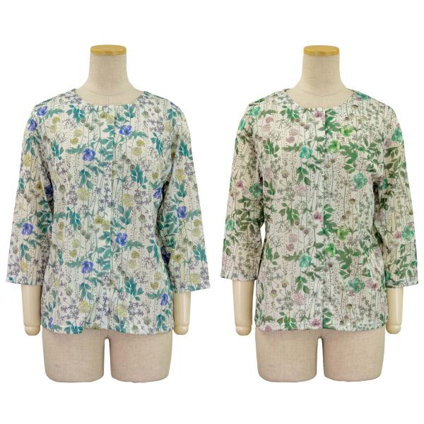 7分袖 スナップボタン 前開き 薄地ニット カットソー はおれるTシャツ シニアファッション 春夏 婦人 レディース 母の日 介護 施設 デイザービス