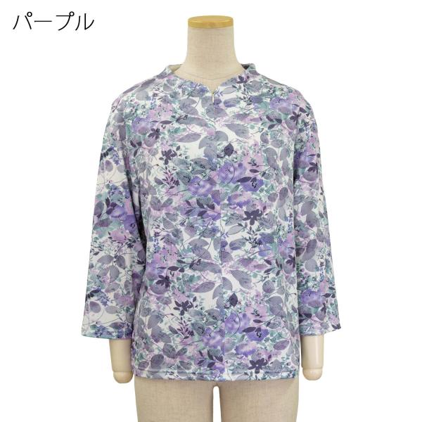 7分袖 スナップボタン 前開き 薄地ニット カットソー はおれるTシャツ シニアファッション 春夏 婦人 レディース 母の日 介護 施設 デイザービス