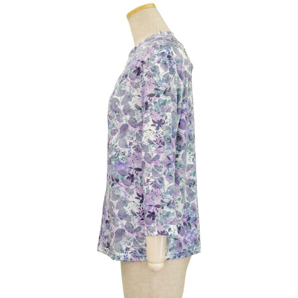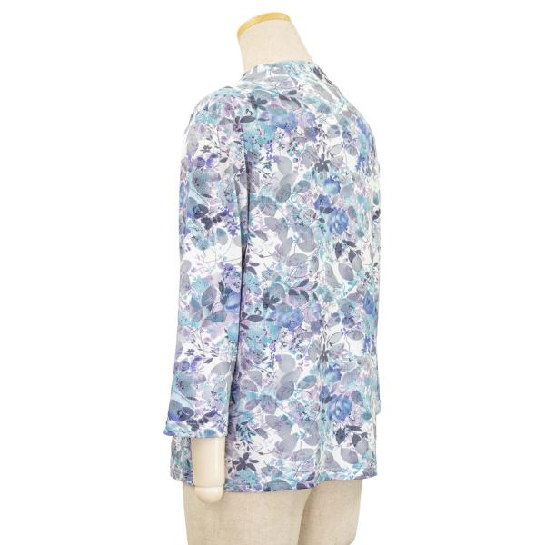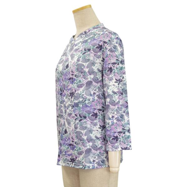 シニアファッション 春夏 7分袖 4Way プリント ロングファスナー ストレッチ カットソー Tシャツ トップス 母の日 介護 施設 デイザービス