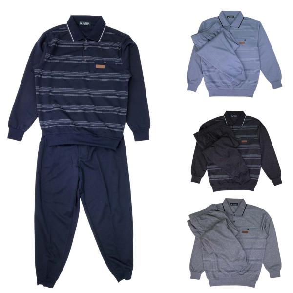 シニアファッション 80代 70代 メンズ 春 秋 スウェットスーツ ポロ ブルゾン パンツ 上下セット 衿付き 紳士 父の日 介護 施設 デイサービス