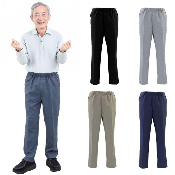 【シニア メンズ】らくらくスラックス風 イージーパンツ 総ゴム 前ファスナー付き 高齢者用 静電気防止 介護 お出かけ用 ズボン 70代 80代 快適パンツ