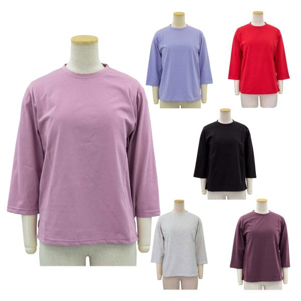 シニアファッション 春夏 日本製 7分袖 綿100 無地 クルーネック Tシャツ カットソー トップス 婦人 ギフト 婦人服 高齢者 服装 通販 レディース 70代 80代 90代