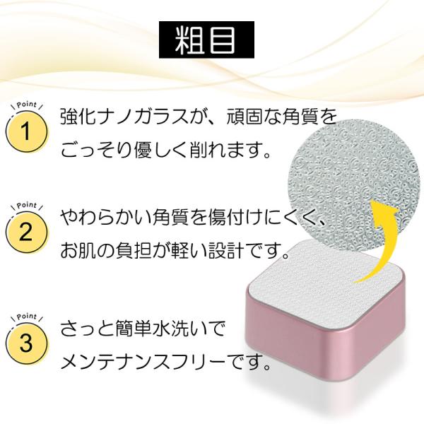 ・かかとやすりは強化ナノガラスを使用、特殊レーザー加工のヤスリ面がしっかり角質を落とします。