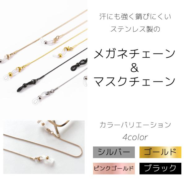 メガネストラップ 黒 シルバー ゴールド ピンクゴールド