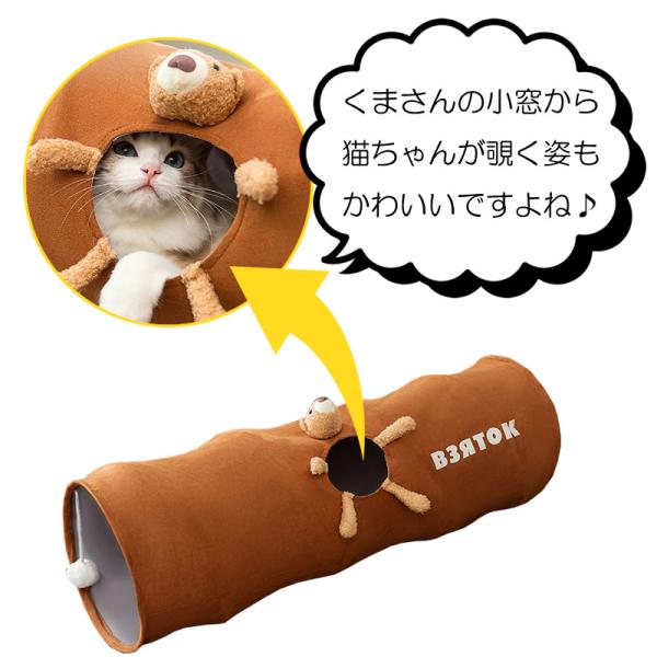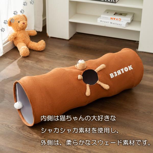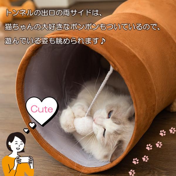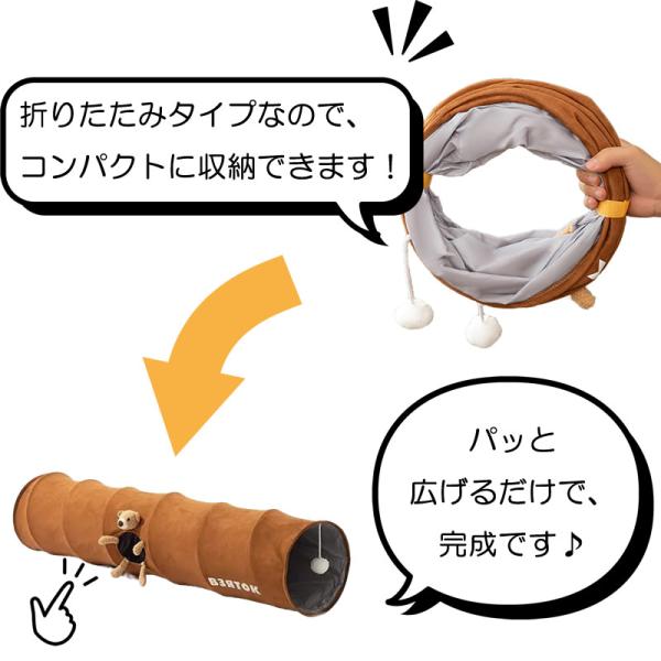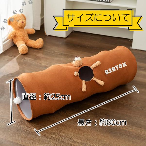 キャットトンネル 猫 トンネル 猫トンネル おもちゃ とんねる 柔らか素材 長い 人気 折り畳み式 おりたたみ ポンポン付き ぬいぐるみ [茶色 長さ80cm 直径25cm]