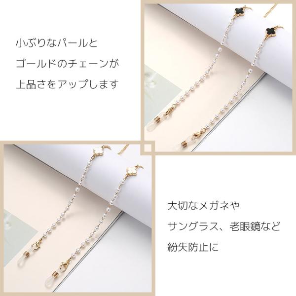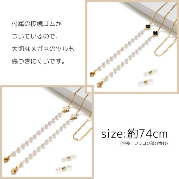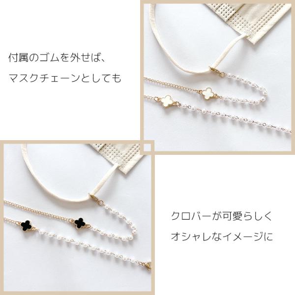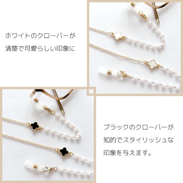 メガネチェーン レディース パール クローバー 黒 白 四つ葉 眼鏡チェーン メガネストラップ マスクチェーン 眼鏡 花 おしゃれ かわいい [ クリックポスト対応 ]