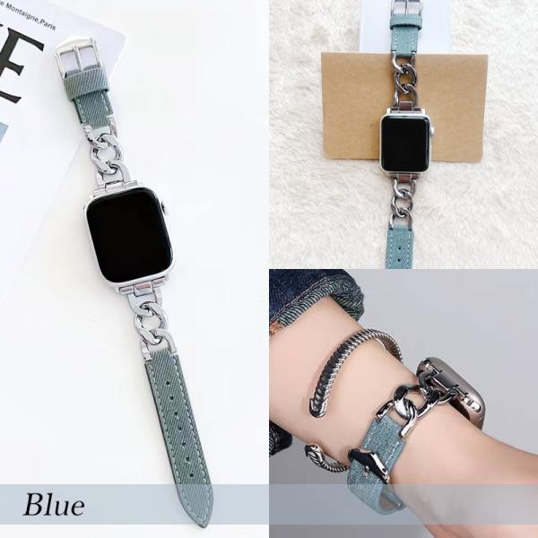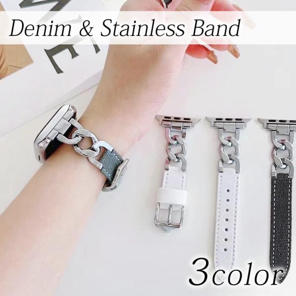 アップルウォッチ バンド レディース デニム 本革 ステンレス apple watch ベルト 38mm 40mm 41mm 42mm 44mm 45mm コンパチブル レザー [ クリックポスト対応 ]