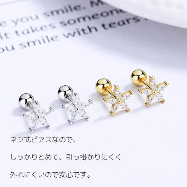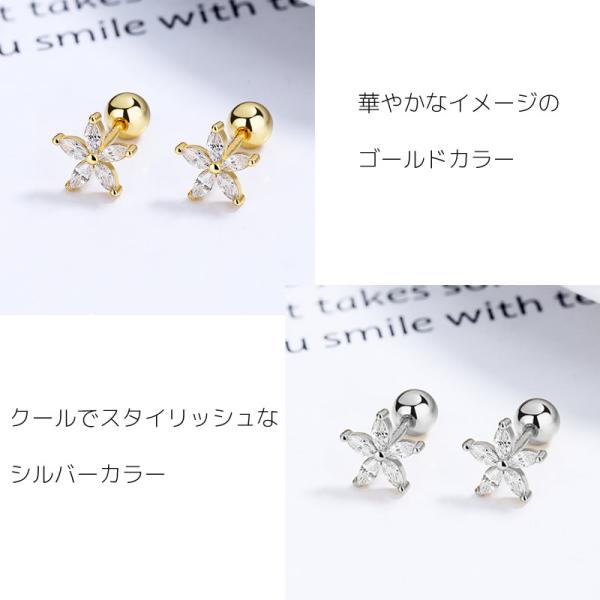 ピアス ネジ式 キャッチ 16g ステンレス 花 フラワー ラブレットピアス かわいい 花柄 キラキラ ネジ ねじ 2種類のキャッチ付 [2個入り] [ クリックポスト対応 ]