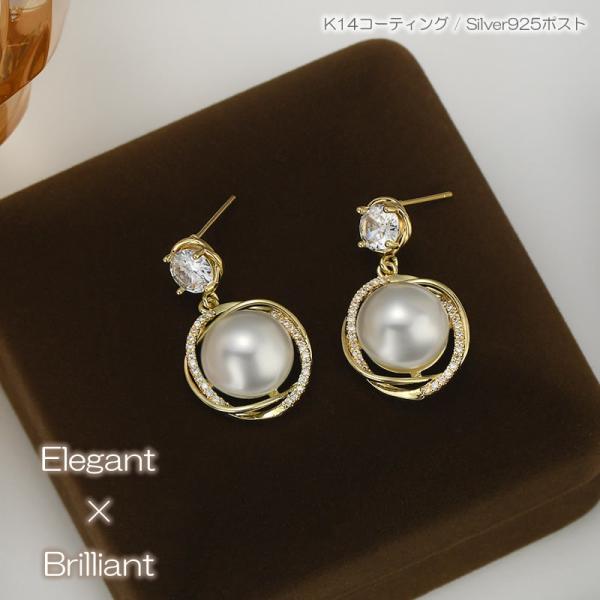 ・ジルコニアとパールデザインがキラキラと揺れておしゃれです。
