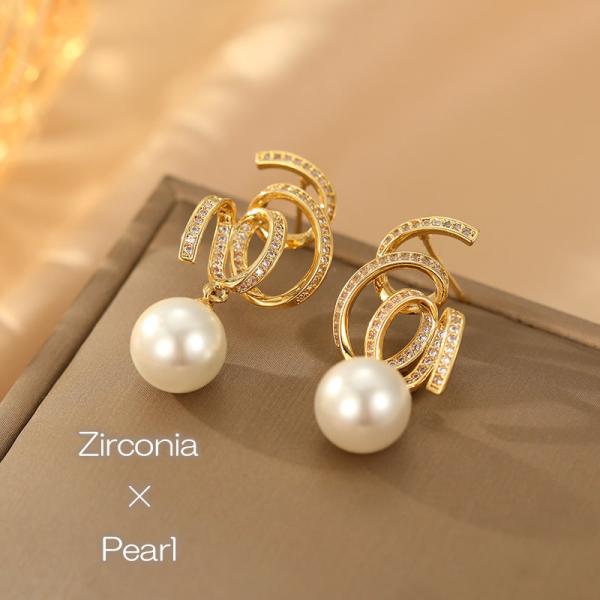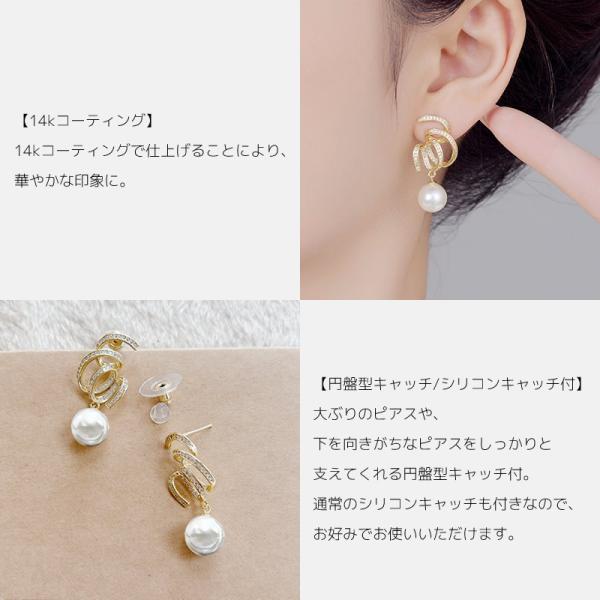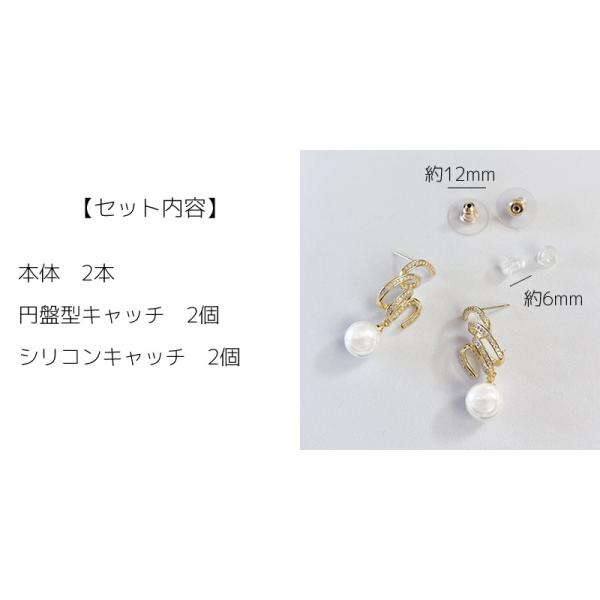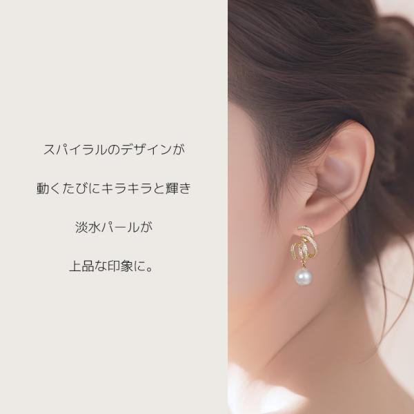 ピアス レディース パール 大きめ 揺れる スパイラル ジルコニア シルバーポスト キャッチ シリコン 円盤型キャッチ 大人 上品 [ クリックポスト対応 ]