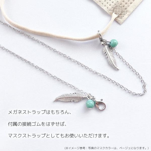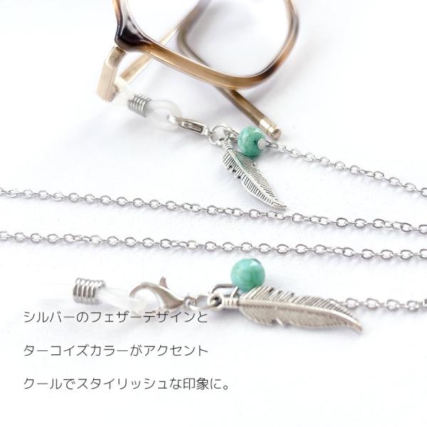 メガネチェーン レディース [フェザー ターコイズ] おしゃれ シルバー 羽 眼鏡チェーン メガネストラップ マスクチェーン 老眼鏡 [ クリックポスト対応 ]