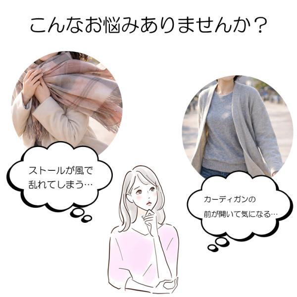 【商品について】ストールやカーディガンなどの前開きが気になる方に。