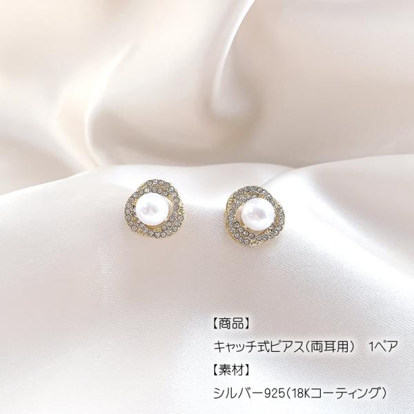 ピアス レディース パール ゴールド ラインストーン ダブルライン S925 両耳用 キャッチピアス [ クリックポスト対応 ]