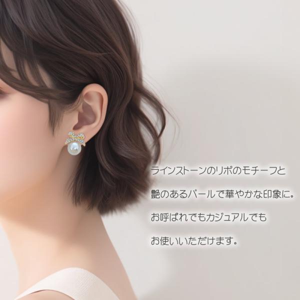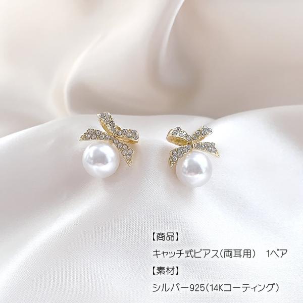 ピアス レディース パール ゴールド リボン S925 両耳用 キャッチピアス 結婚式 入学式 お食事会 イベント [ クリックポスト対応 ]