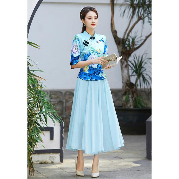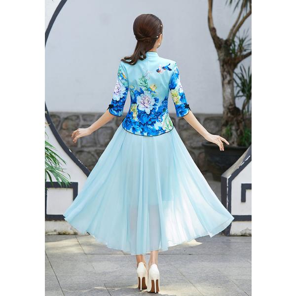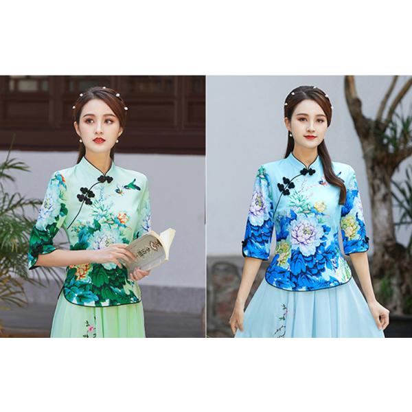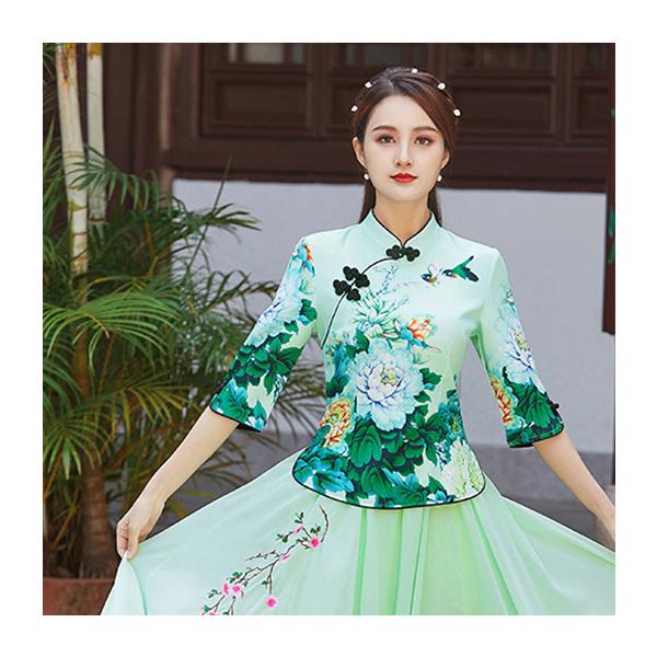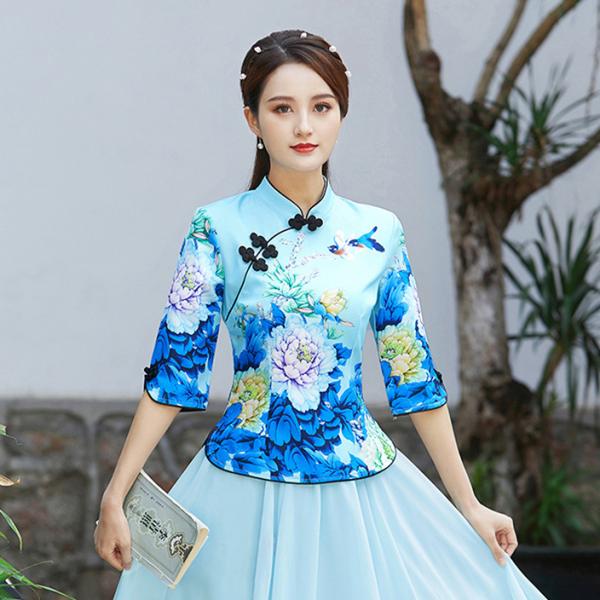チャイナ服 トップス chaiは★ポイント最大3倍 花柄 五分袖 プリント 民族 衣装 上品 普段着 中国風 zh295