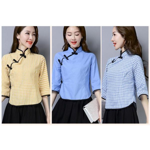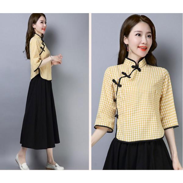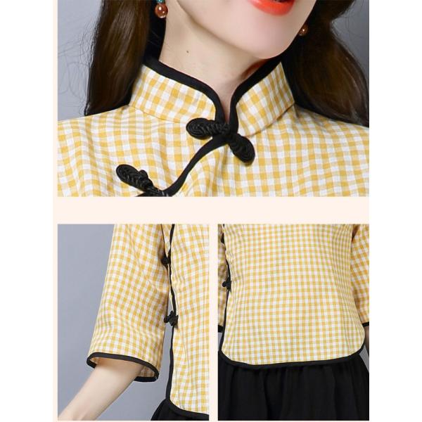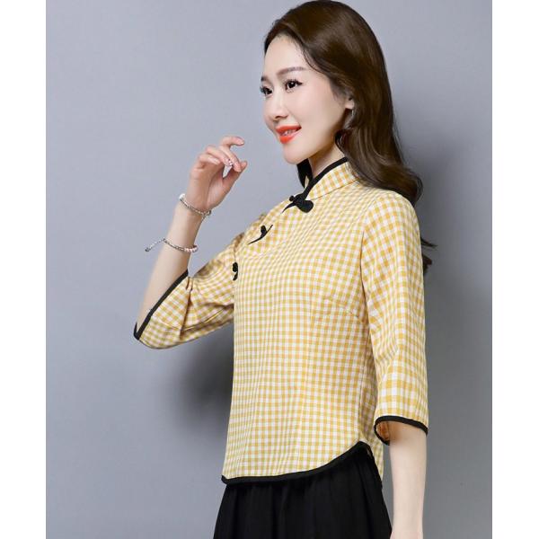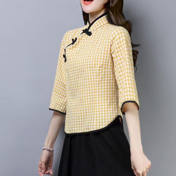 アジアンテイスト チャイナ服 五分袖 トップス 民族 チェック 衣装 上品 本格 普段着 舞台 中国風 zt137 【chaiはポイント最大3倍】