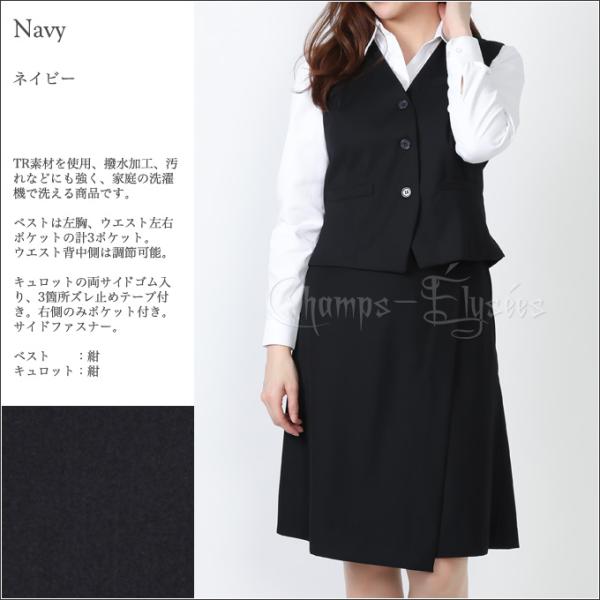 ベストスーツ 事務服 ベスト キュロット 洗濯機で洗える 消臭 抗菌 撥水加工 UVカット TR素材 機能性 オールシーズン対応 小さいサイズ 大きいサイズ 企業制服