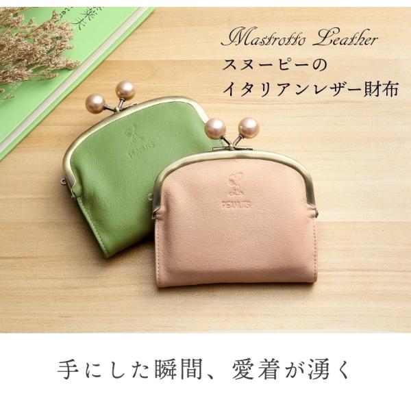 財布 スヌーピー 二つ折り がま口財布 レディース イタリアン レザー 本革 がま口 小銭入れ 小銭 お札 キャラクター 誕生日 プレゼント