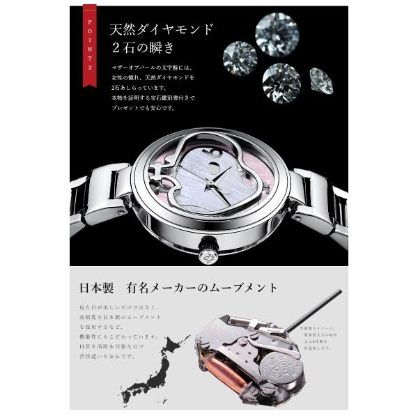 ●材質/[本体]BS(ロジウムメッキ)[ベルト/裏蓋]ステンレス ●仕様/風防:クリスタルガラス、国産クォーツ、天然ダイヤ ●セット内容/ギフトボックス、ショップ袋、保証書、バンド調整棒、宝石鑑別書