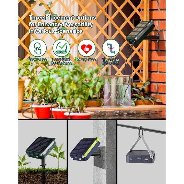 ソーラー式自動散水タイマー, 15鉢対応, 15m散水ホース付き, 屋内外兼用, 植物自動水やりシステム