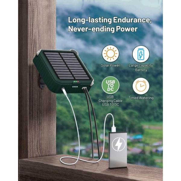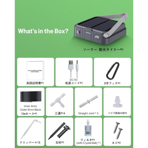 ソーラー式自動散水タイマー, 15鉢対応, 15m散水ホース付き, 屋内外兼用, 植物自動水やりシステム 自動灌漑装置 自動散水機 家庭用 ガーデニング用品 水やりシステム 留守 鉢植え給水 (グリーン)