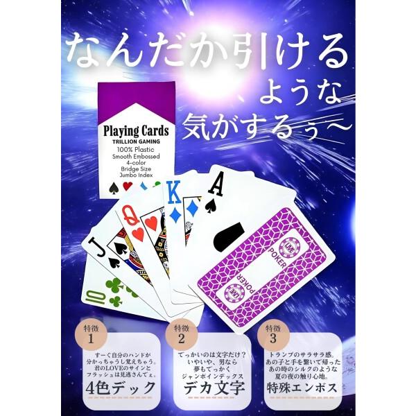 「カジノ導入数全国NO.1」TRILLION GAMING Playing Card 4色トランプ ポーカーのハンド数アップギミック多数搭載 ジャンボインデックス ブリッジサイズ (COSMIC PURPLE)