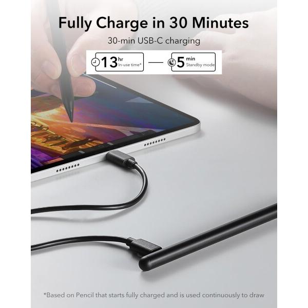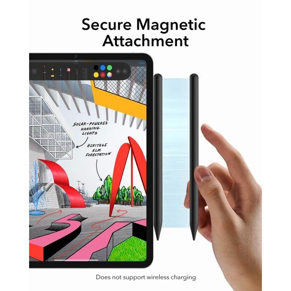 ESR iPad ペンシル 2026-2018 用ペン 傾斜感知 アップルペンシル iPad第11世代(A16)/第10世代、Air 11/13、Pro 11/12.9/13、Mini 6/5, ブラック