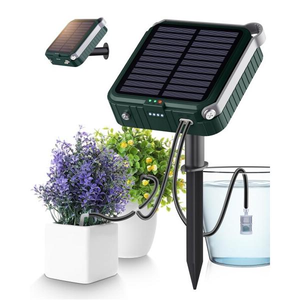 ソーラー式自動散水タイマー, 15鉢対応, 15m散水ホース付き, 屋内外兼用, 植物自動水やりシステム