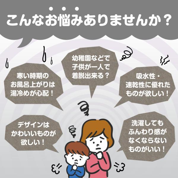 【お子様も嬉しいふわもこ感触】お子様も大好きなふわもこ感触が、お風呂後のお着替えをすすんでしてくれるようになります。