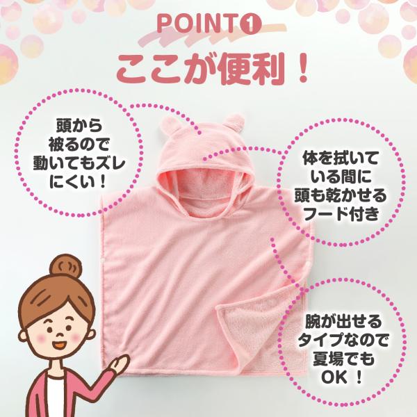 【お風呂あがりの忙しさを解消】お風呂上がりやプール水浴びの時もパッとはおれる可愛いバスタオルです。