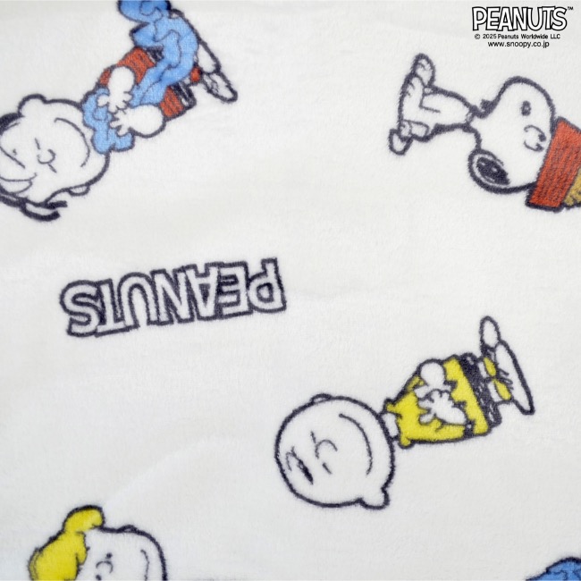 可愛いPEANUTSのキャラクターたちが総柄デザインされていて