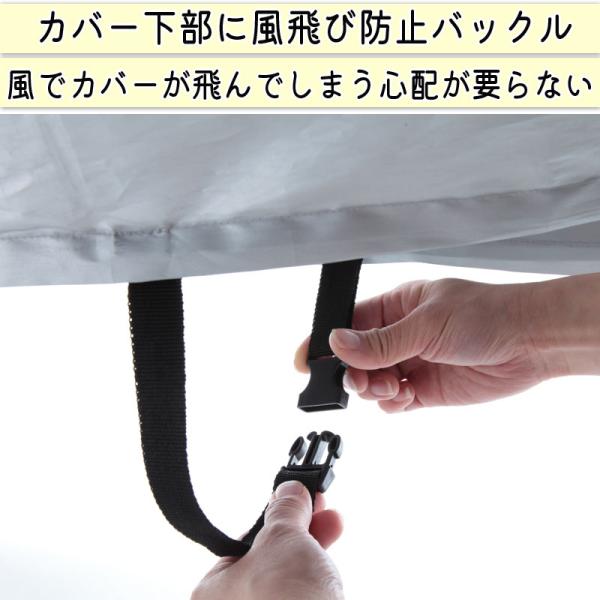 カバー下部に風飛びを防止するバックルが付いているので、風でカバーが飛んでしまう心配が要りません。