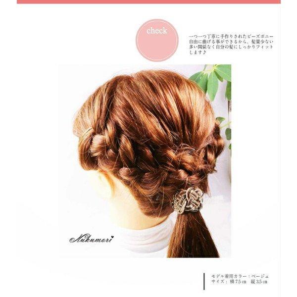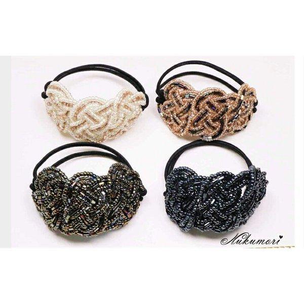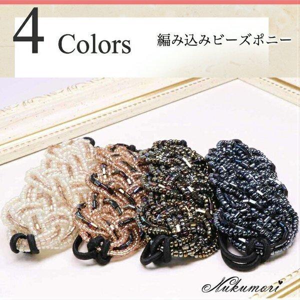 編み込みビーズポニー ヘアゴム ヘアアクセサリー ハンドメイド ビーズヘアゴム