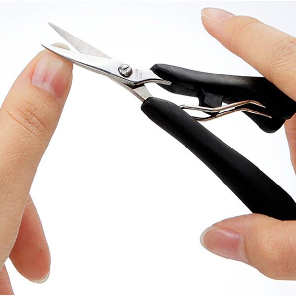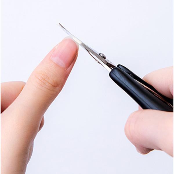 2:刃は手前にカーブしており、反り返った側に刃を当てて切ると深爪しにくく、少しずつ爪を整えることができます。はんたいに、カーブが内側に向いた状態で爪を当てて切るとキレイなアールの爪に仕上がります。