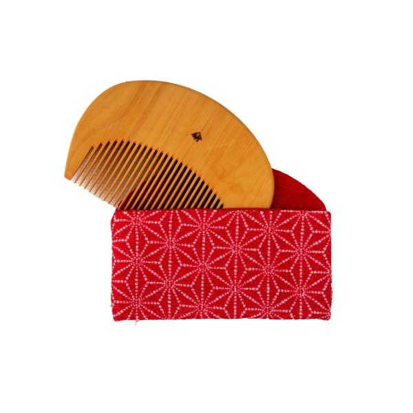 ギフトラッピング対応 薩摩つげ 櫛 薩摩黄楊 つげ櫛 日本製 京都 十三や工房 職人仕上げ 半月型 携帯用 ちりめんケース付き