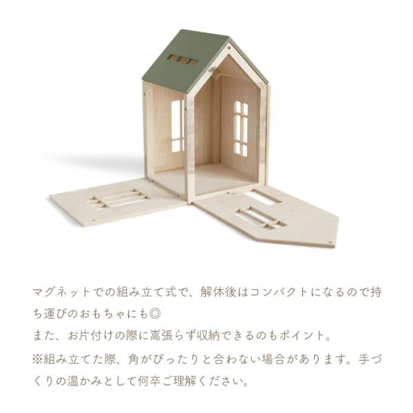 マグネットつきの9つのパーツを組み立ててつくるドールハウスです。