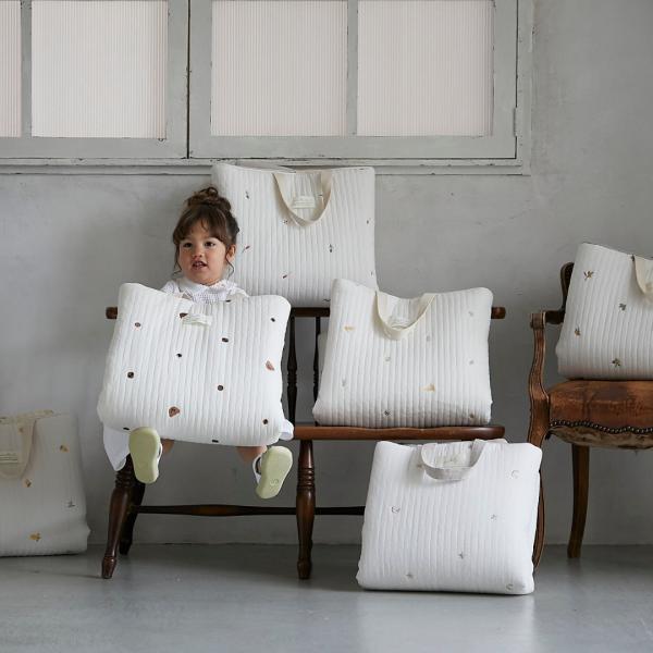 ブランケットや枕もいれて一緒に持ち運べる便利なトートバッグ型です。