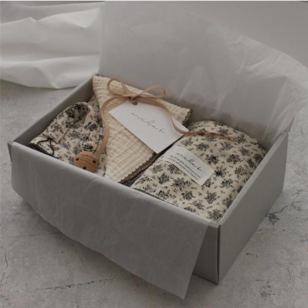 mela-Bから 子育てに必須のお役立ちアイテム <コットンファブリックシリーズ>から人気アイテムをチョイスしたちょっとお得なギフトセットが新登場。