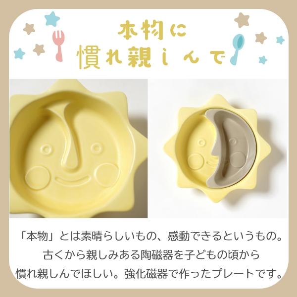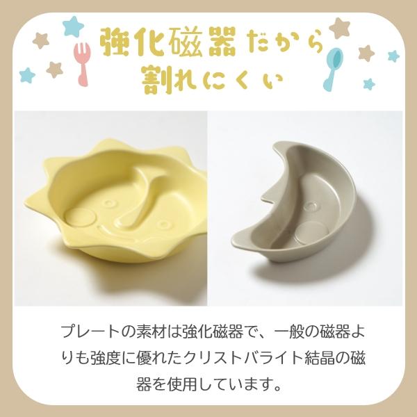 食事をきれいに食べ終わった後にニコニコと喜んでくれるような太陽のプレートと、お子さんの成長を優しく見守る月のプレートのセットです。プレートはお子様でもごはんを集めやすく、すくいやすい設計になっています。