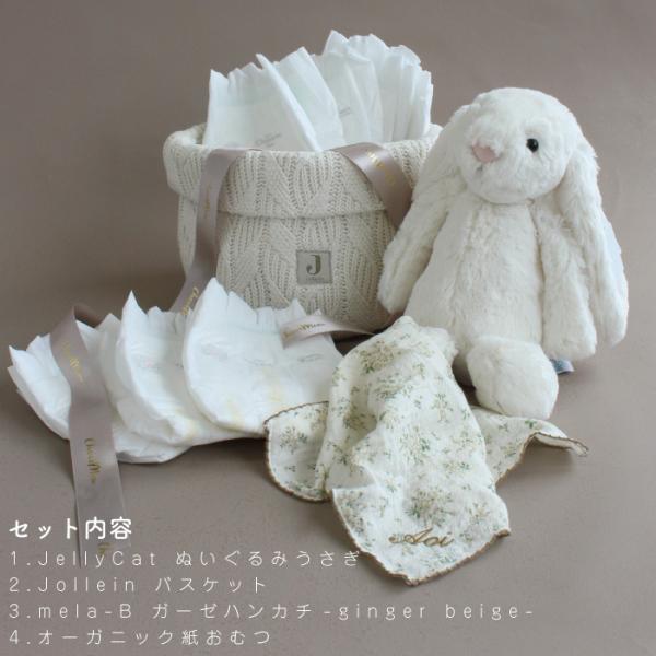 おむつケーキ | jollein×Jellycat Bunny on Basket | ジェリーキャット 出産祝い 男の子 女の子 名入れ イニシャル 刺繍 ギフトセット オーガニック