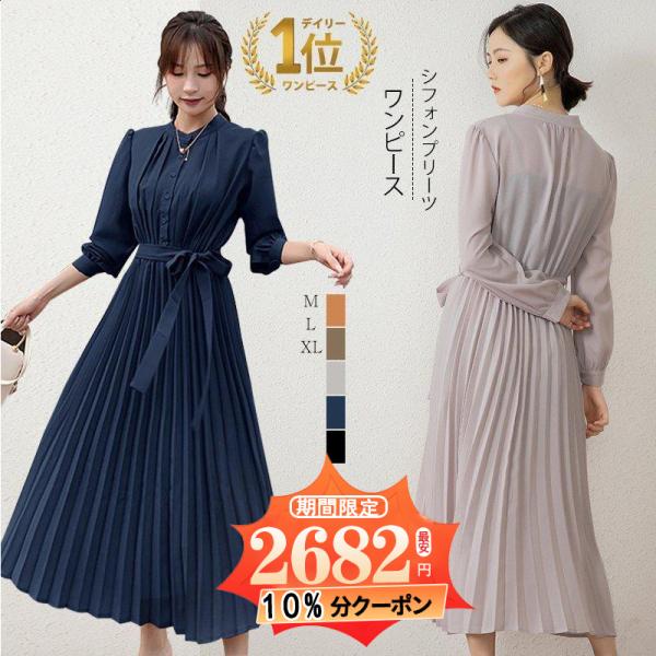 ワンピース 長袖 半袖 2TYPE選べる 秋ワンピース プリーツワンピース レディース 春夏秋冬 ロングワンピース 大きいサイズ Aライン 秋服(Hop131HeM)