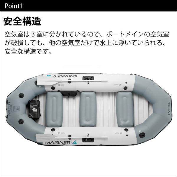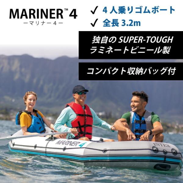 ゴムボート ボート 船 手漕ぎ 4人乗り オール 収納バッグ 空気入れ付き 釣り 海 湖 川 intex インテックス マリナー4 インフレータブル