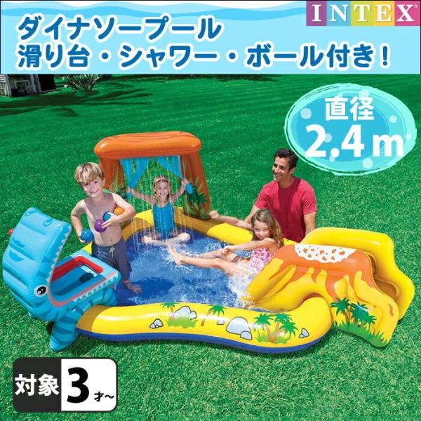 プール ビニールプール 大型 2m キッズ 子供用プール インテックス INTEX ダイナソープレイセンター 249×191×109cm ボール シャワー ボール 水あそび レジャ…