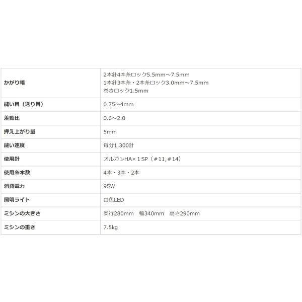1台で2〜4本糸・巻きロックが縫える 豊富なバリエーション