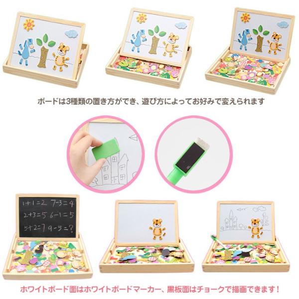 木製 ホワイトボード 黒板 おもちゃ マグネット パーツ 絵合わせ ゲーム お絵かき 磁石 動物 両面描画 子供用 男の子 女の子 ◇CH-SA-MAPANEL