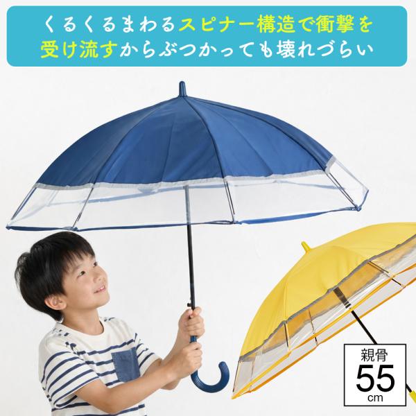 傘 長傘 ウォーターフロント キッズ スピンキャノピー55cm スピナー構造 傘が回転する 子供 キッズ 小学生 男児 女児 親骨55cm ジャンプ傘 雨傘 スクール傘